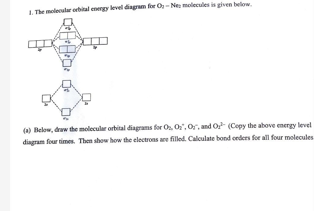 Solved 1 The Molecular Orbital Energy Level Diagram For 02 Chegg Com